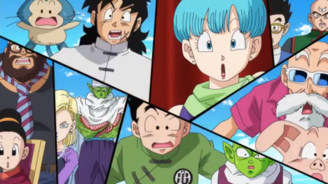 El Kaio del Norte advierte a Vegeta de la llegada de Beerus. Mientras tanto, en la Corporación Cápsula, Bulma celebra su cumpleaños y los Guerreros Z disfrutan de la fiesta. Entonces llega Beerus a la Tierra preguntando a Vegeta sobre el Super Saiyan Dios, en ello Bulma llega y los invita a su fiesta, Beerus y Whis acceden por la comida. Vegeta nervioso por el gran peligro evita la ira de Beerus. la Banda de Pilaf aparecen convertidos en niños (ya que reunieron todas las esferas del dragón y desearon ser jóvenes pero Shenron los hizo demasiado jóvenes).